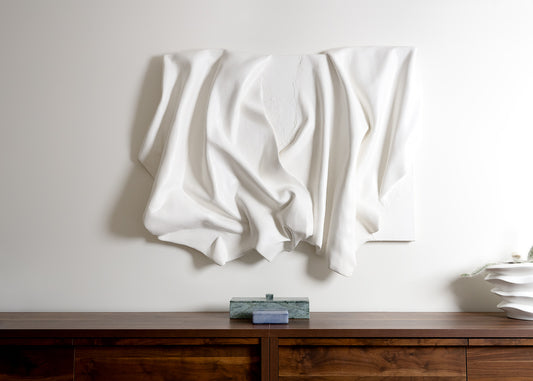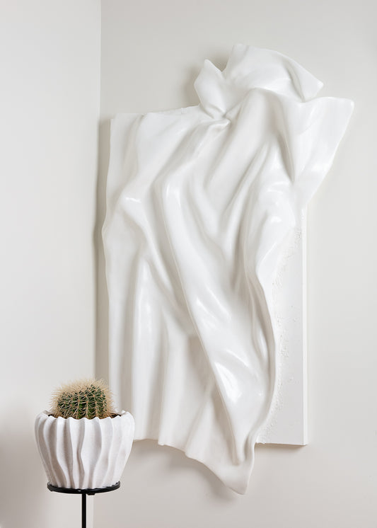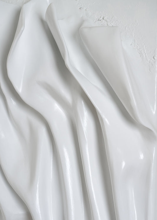 abstract wall sculpture, plaster, off white finish, 3d art piece
