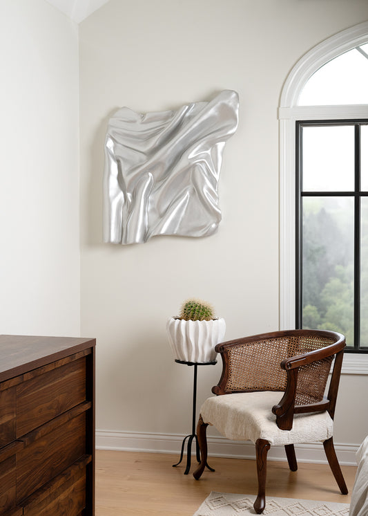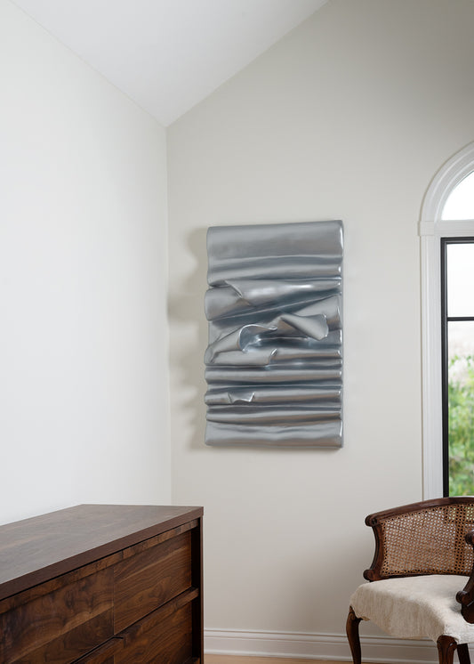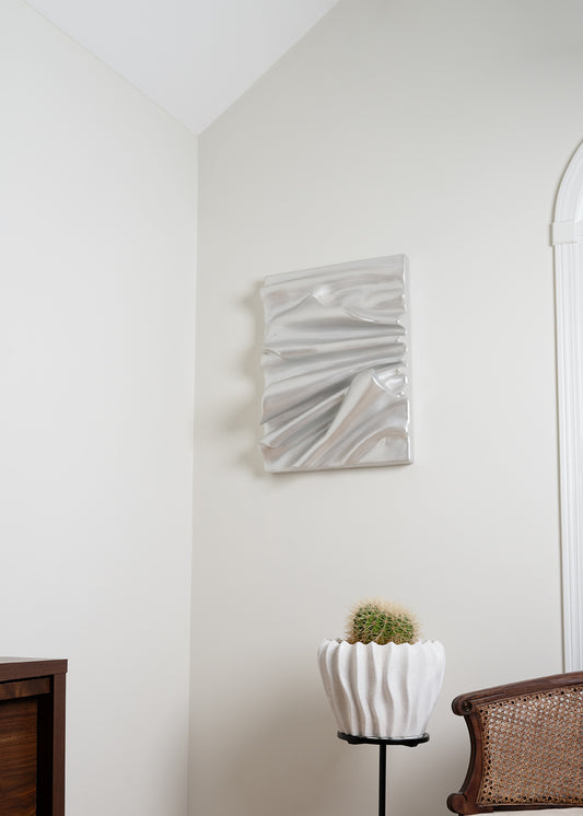 abstract Wall sculpture, metalic finish , silver, textured wall piece
